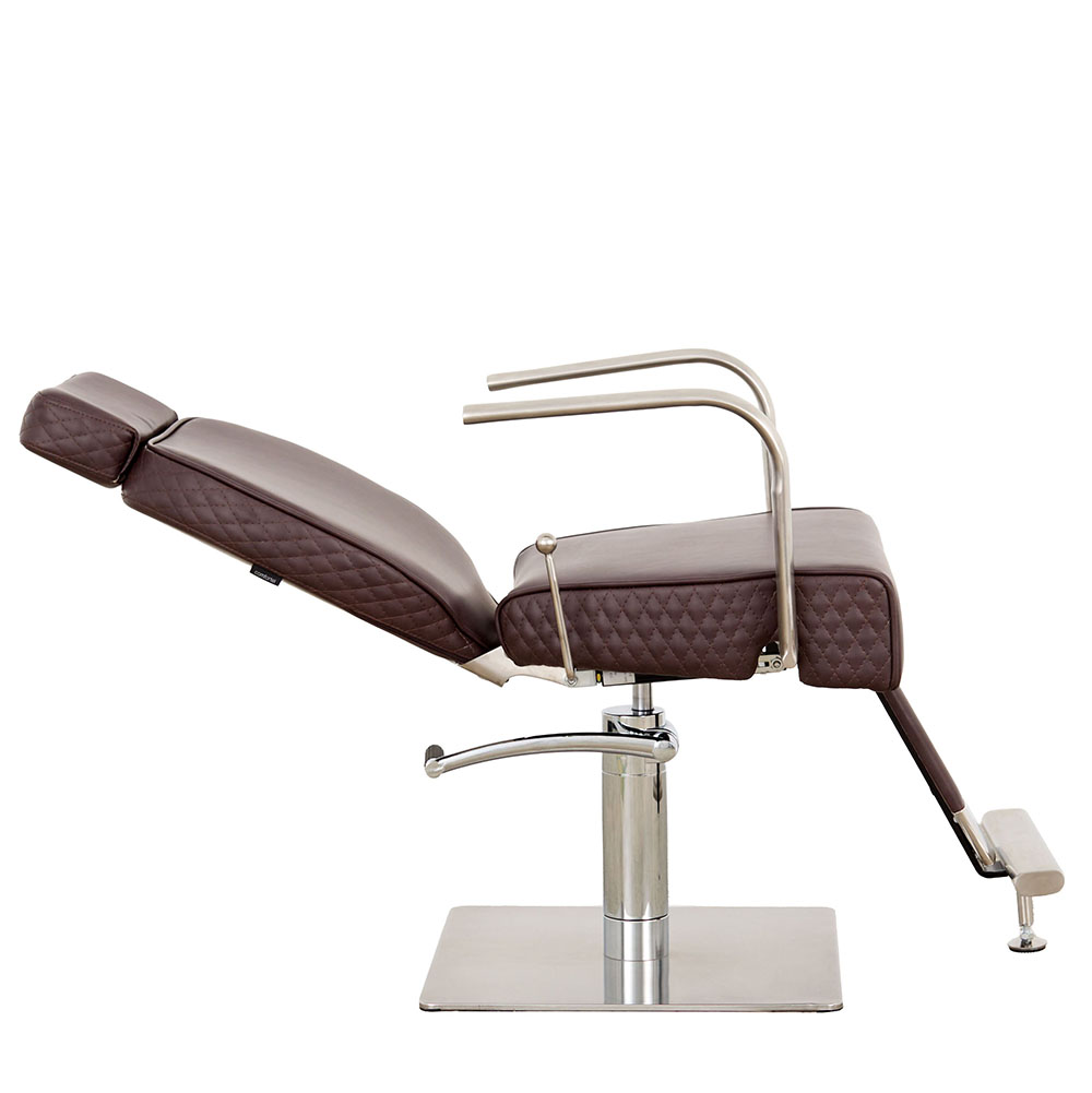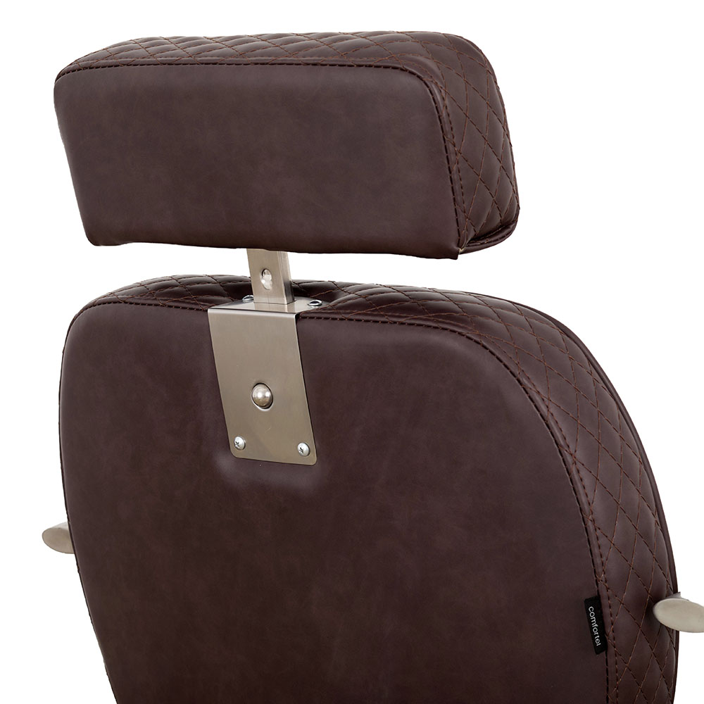 Oh, Bella, Bella, because one beautiful is never enough. Bella is a reclining salon chair dressed in Comfortel’s Merlot upholstery, a mottled mix of chocolate brown and burgundy tones that feel rich and timeless. Diamond‑quilted sides, brushed stainless steel details and plush curves create an experience that feels luxurious from every angle. Made to turn heads and transform everyday appointments into something beautiful.
