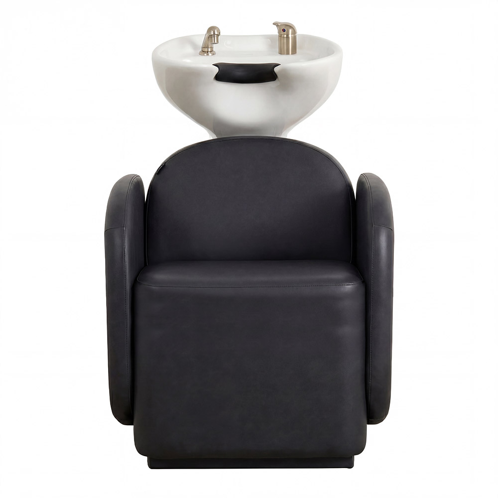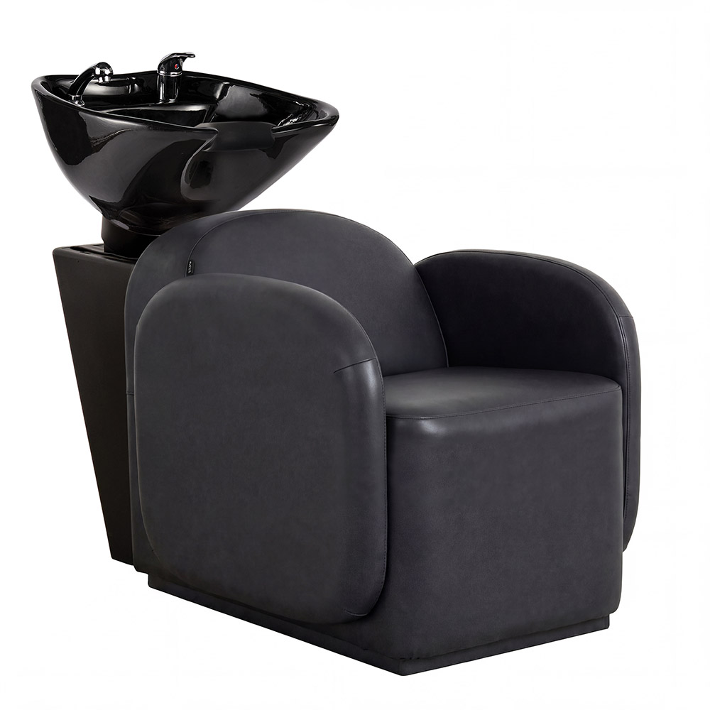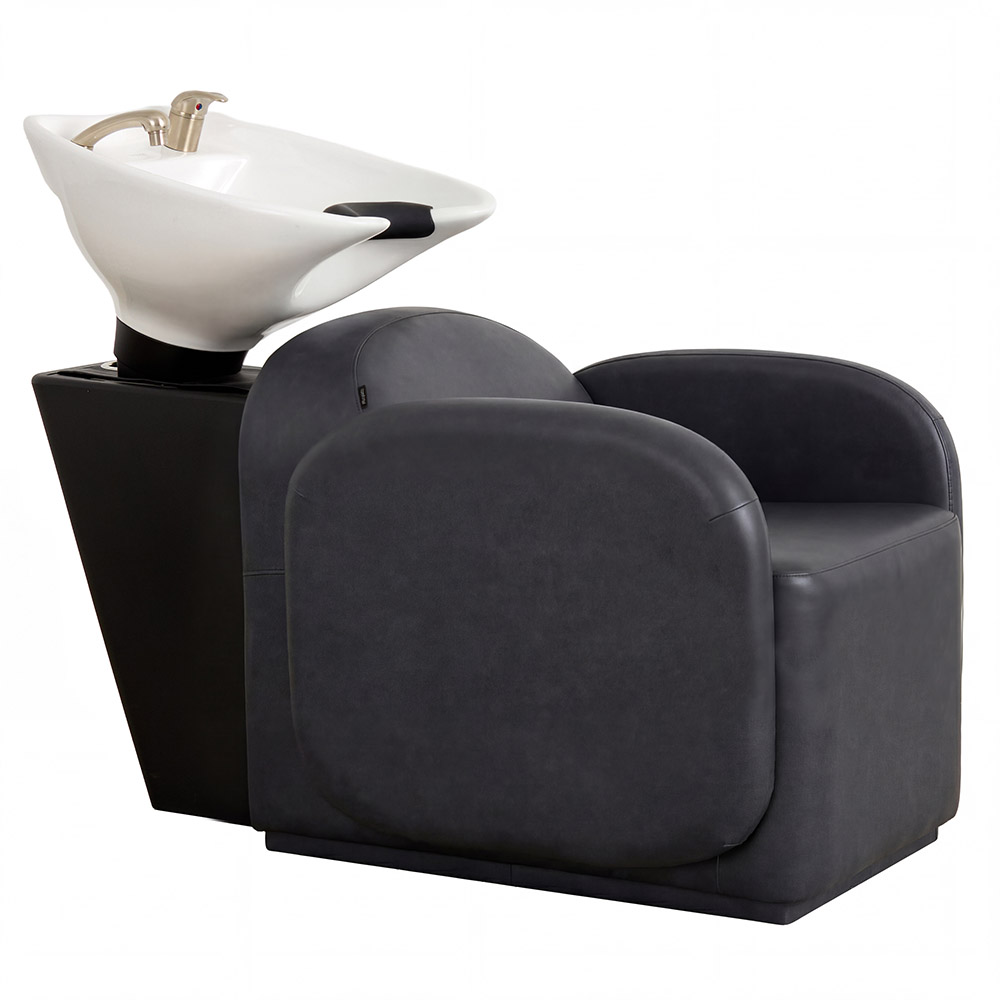 Beyond her shape, Lola is built for comfort that performs. Memory foam cushioning and fully upholstered armrests support the body with ease throughout every service and a deep ceramic shampoo basin, available in black or white, adjusts to suit different client heights, allowing for smooth, intuitive workflow behind the chair.